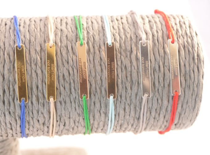 Bracelet message Start Now not tomorrow en argent 925 Fil de couleur à choix Ajustable