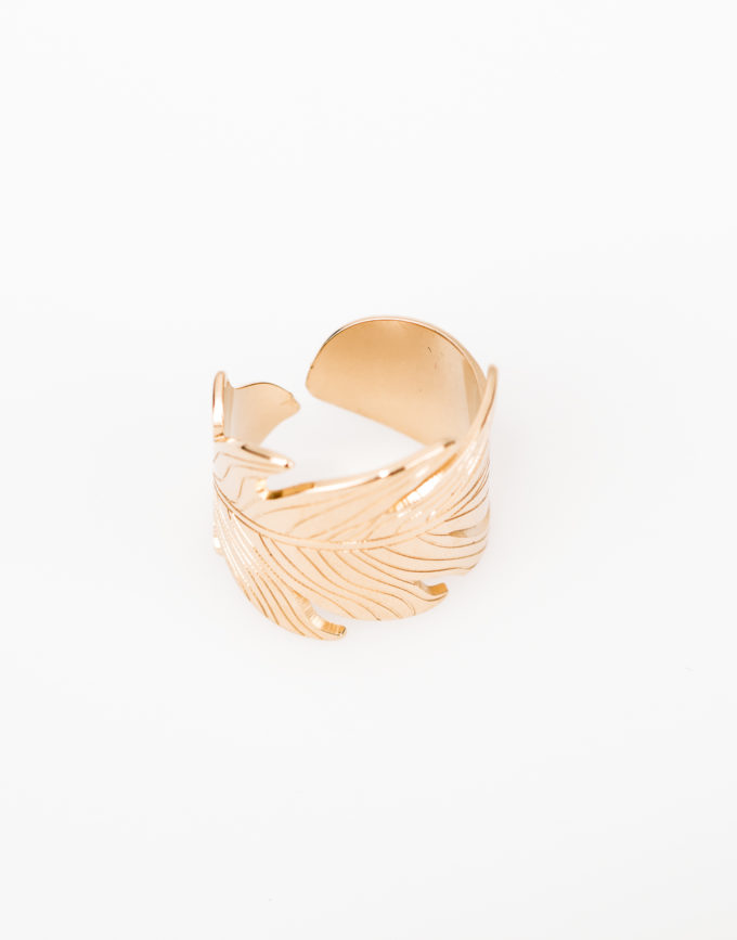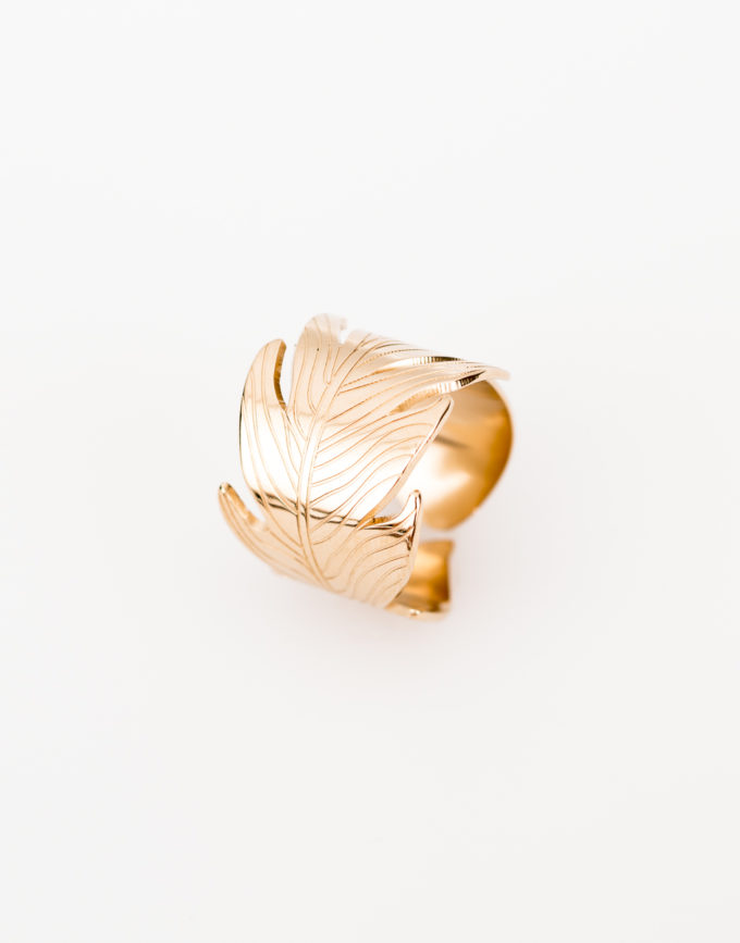Bague Plume Large en argent 925 plaqué en or 5 microns