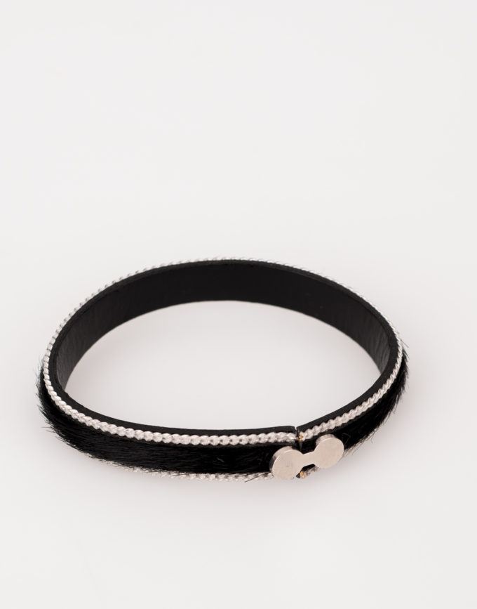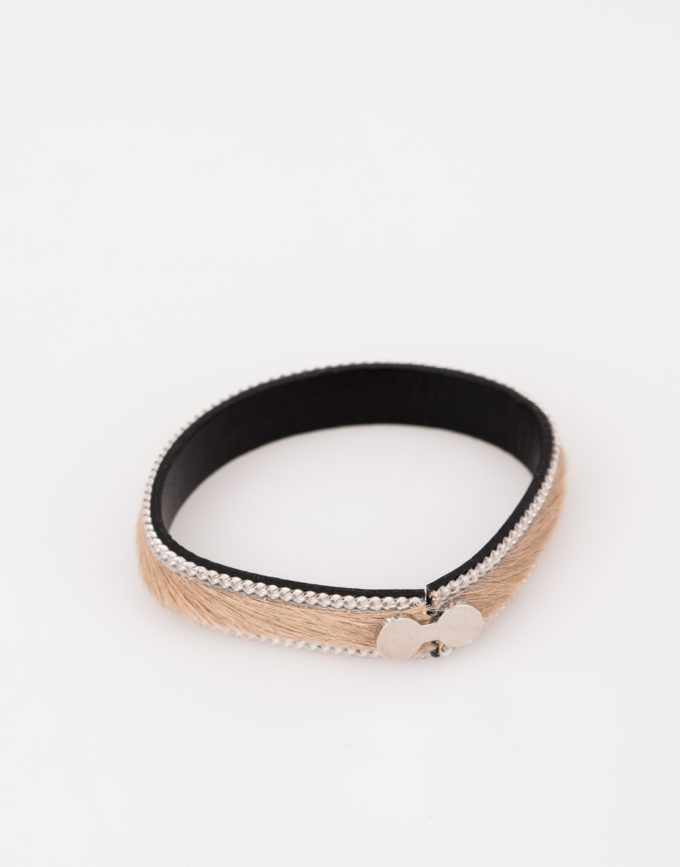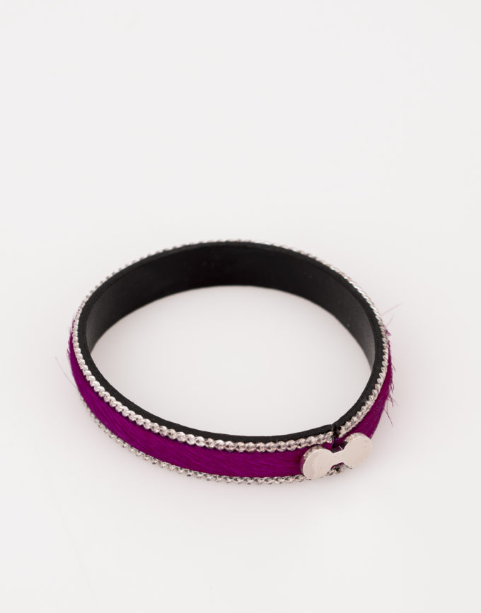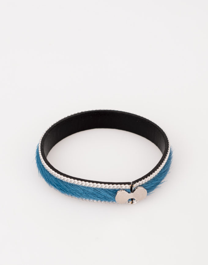 Bracelet en cuir vachette bleu.