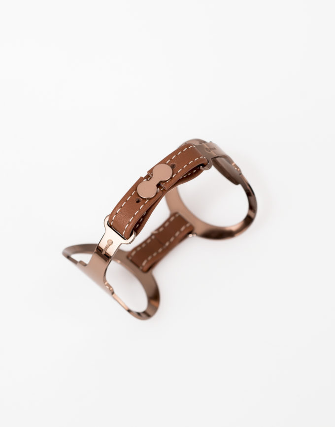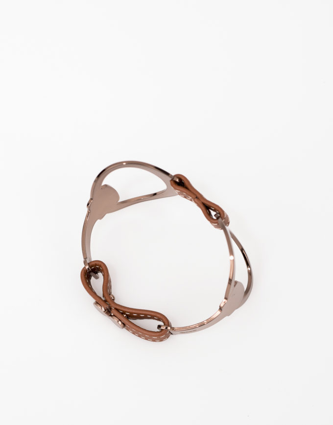 Bracelet Mors Double Or Brun Cuir Camel Foncé