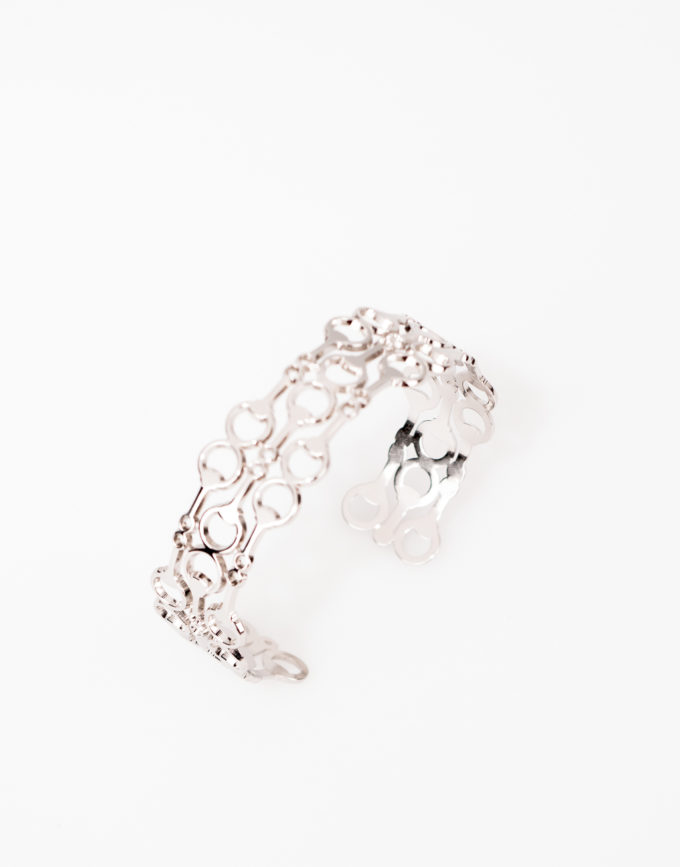 La manchette existe également en argent 925 plaqué en or ou en or rose 5 microns.