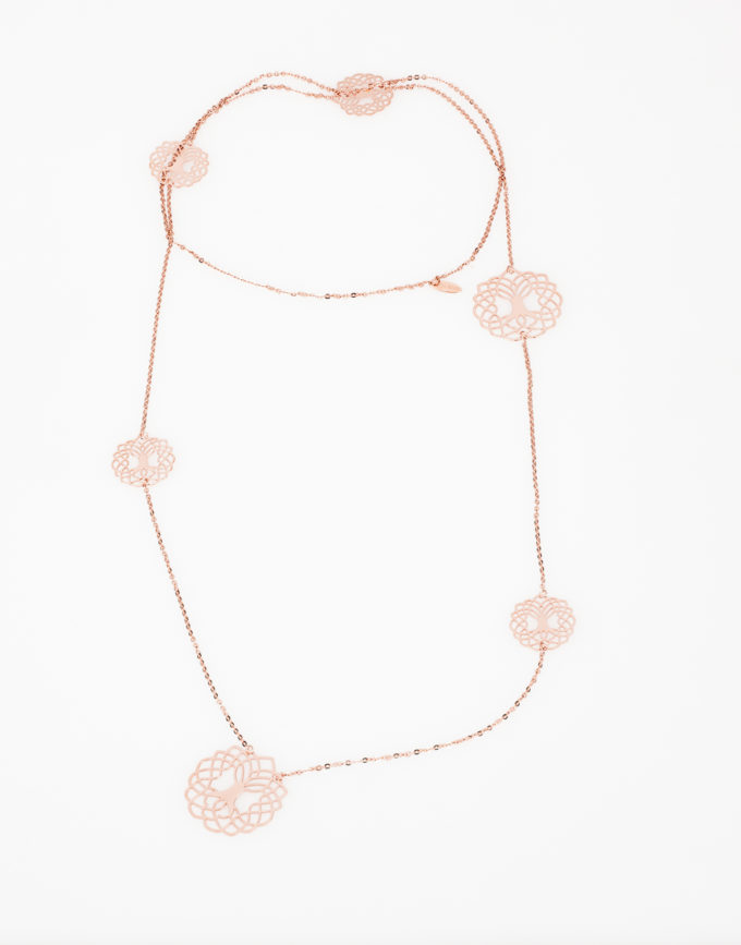Sautoir avec 6 motifs Arbre de Vie en argent 925 plaqué en or rose 5 microns